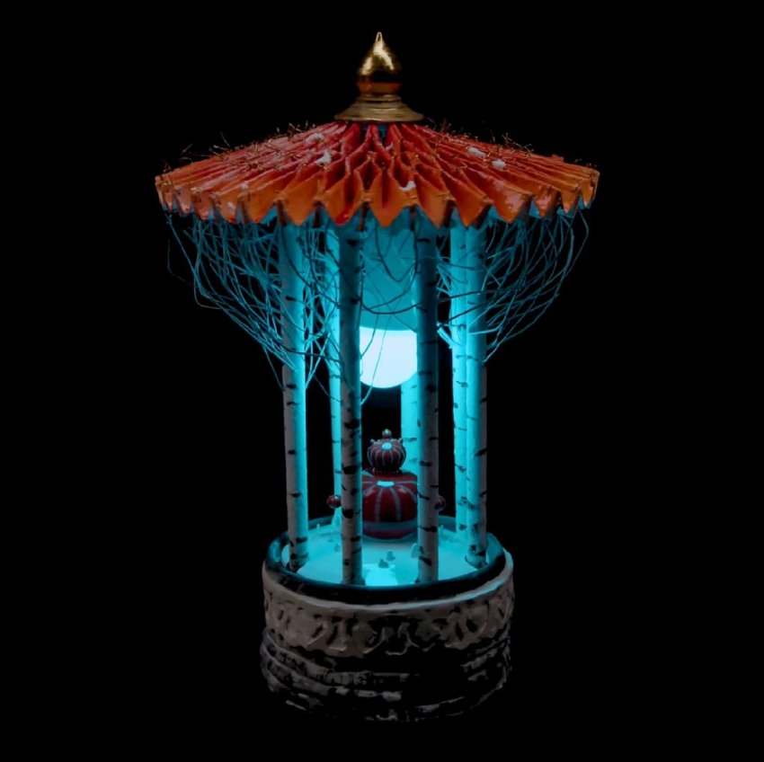 Чёрный вигвам — таинственное место в мифологии сериала «Твин Пикс», портал в параллельную реальность, через который приходят мистические персонажи. Механизмы его существования, как и механизмы бессознательного, нельзя объяснить рационально. Универсальные формы и образы, связанные с ними, проявляются в снах, мифах, фантазиях и скрыто руководят человеческими действиями. Красные портьеры, мерцающий свет, странные звуки, нездешние образы…. У зрителя несколько путей взаимодействия с непостижимым миром: выставку можно созерцать, растворяясь в манящей атмосфере сновидений, а можно — разгадывать, следуя символам и знакам таинственного квеста. Полное погружение гарантировано в любом случае.