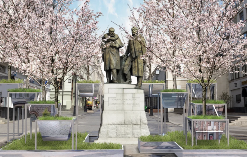 - Вишневый сад у памятника К. С. Станиславскому и В. И. Немировичу-Данченко