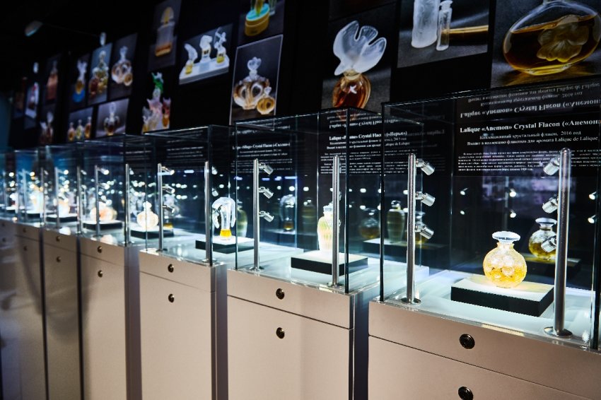 Основу экспозиции составляют флаконы для парфюмерии Lalique из частной коллекции Анны Мироненко. Гости выставки смогут увидеть уникальные экспонаты, среди которых две прижизненные работы Р. Лалика, «Хрустальная коллекция» флаконов Марка Лалика и другие его работы для торгового дома Нины Риччи периода 1946–1977 годов.