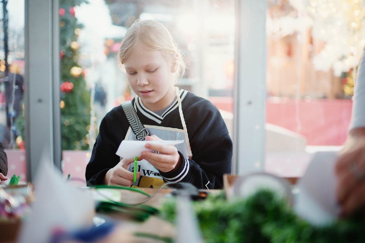 Первые мастер-классы прошли 22 и 23 ноября. Гости изготавливают калейдоскопы, салфетки с растительными принтами, венки из бумаги и фигуры животных из соломы. Вход на занятия свободный.