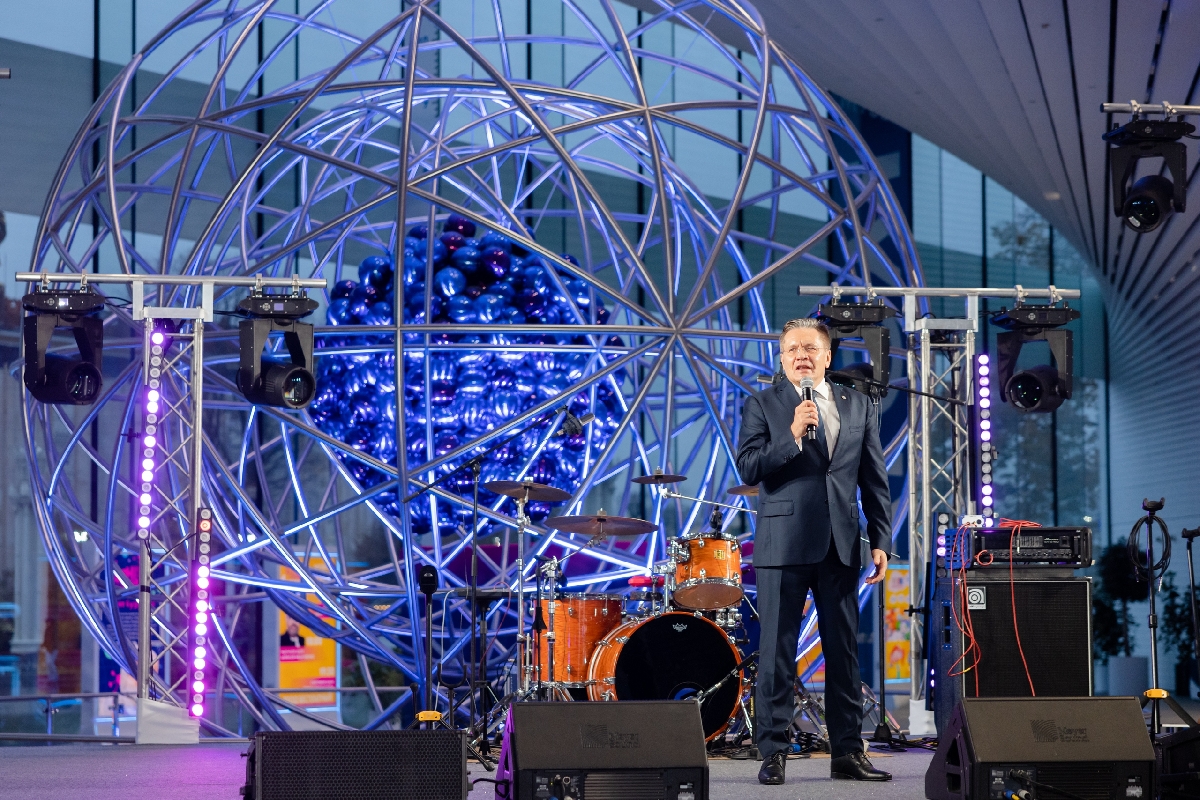 Приветственная речь генерального директора музея «АТОМ» Елены Мироненко, перфоманс пластического театра и выступление певицы и саунд-продюсера DRIADA — девушки, которая заплетает научную фантастику в одну косу с народной сказкой.