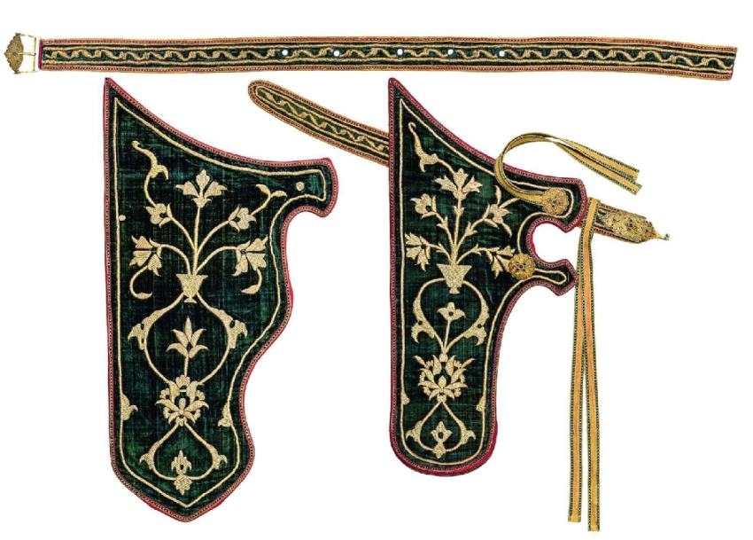 Фото: kreml.ruЭкспозиция включает более 150 предметов из ведущих отечественных музеев, библиотек и частных собраний. В ней представлены памятники, достоверно связанные с потомками Чингисхана при русском дворе, в том числе футляр для Корана касимовского царя Ураз-Мухаммеда из Государственного Эрмитажа, драгоценная фляга-сулея, подаренная касимовским царевичем Сеид-Бурханом царю Алексею Михайловичу, и науз (деталь конского убранства) — дар Авган-Мухаммеда, служилого царевича из Ургенчской династии, из собрания Музеев Московского Кремля.