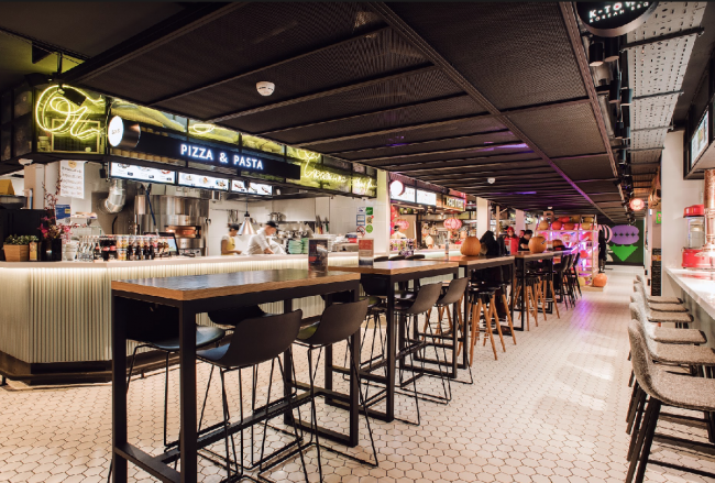 Пространство гастромаркета удобно поделено на 3 зоны. Зона завтраков предлагает вам попробовать прекрасные десерты и завтраки разных стран. В барной зоне вы можете утолить свою жажду различными напитками, а в центральной зоне насладиться изысканными вкусами различных кухонь.