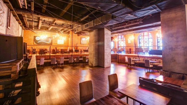Брутальное пространство с бетонными и кирпичными стенами, с элементами металла и дерева, дополнено интересными деталями — столиками из легендарных швейных машинок Zinger, витражами на окнах в стиле авангард. Площадка оснащена райдерным звуковым оборудованием L -ACOUSTICS, LED экраном 5 на 3 метра и профессиональным световым оборудованием.