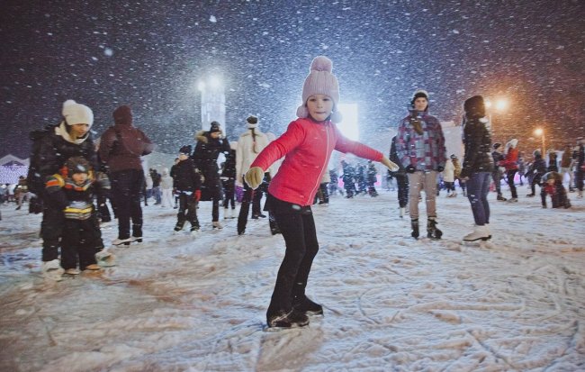 Площадь катка «Лед» составляет 5300 м?, так что места для комфортного катания хватает всем желающим. Те, у кого нет собственных коньков, могут взять пару напрокат: на Фестивальной площади расположились сразу два пункта аренды спортивного инвентаря.