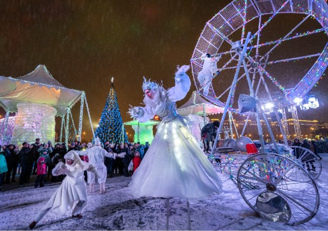 Ежедневно гости фестиваля будут погружаться в невероятную новогоднюю атмосферу с выступлениями уличного театра. Артисты уличного театра в светящихся костюмах устоят настоящий новогодний переполох, вовлекая посетителей в свое карнавально-клоунадное действо.