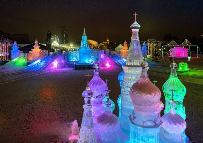 Фестиваль «Ледовая Москва. В кругу семьи» 2019/2020На фестивале будут представлены изо льда самые яркие символы и собирательные образы великих русских достижений, совершенных в разные временные эпохи, разделенные на 7 направлений: наука, медицина, культура, ратные подвиги, история, спорт, космос.