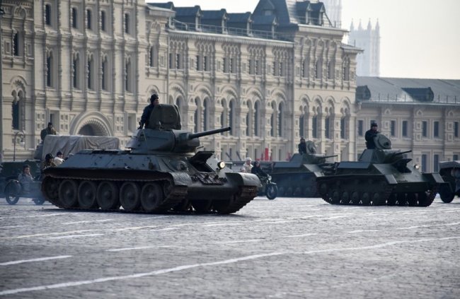 Марш в честь 78-летия парада 1941 года на Красной площадиС 12:00 до 17:00 на Красной площади будет работать бесплатный музей под открытым небом. В экспозиции — «катюша», танк Т-34, бронеавтомобили и самоходные установки.