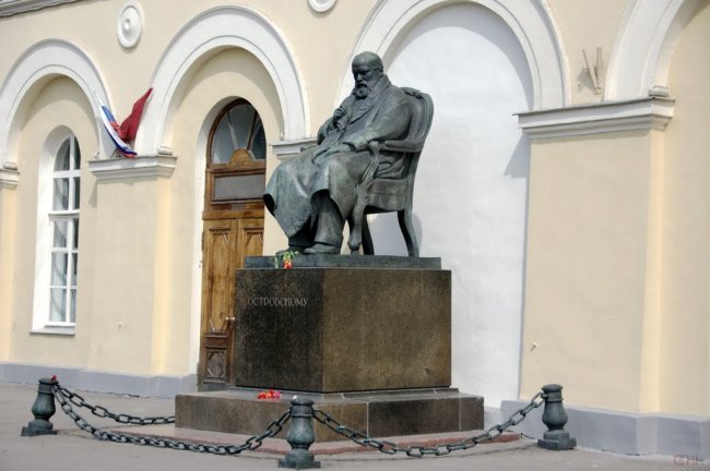 Для Малого театра писали многие авторы, но пьесы Александра Николаевича Островского принесли театру неофициальное название «Дом Островского». Все его 48 пьес были поставлены на сцене Малого театра и в разные годы всегда входили в его репертуар. Он сам читал свои пьесы актерам и неоднократно участвовал в репетициях. В 1929 году у входа в Малый театр был установлен памятник Островскому, постамент из темно-зеленого диорита, доставленного из Финляндии. Пьесы драматурга не сходят со сцены Малого театра и по сей день.