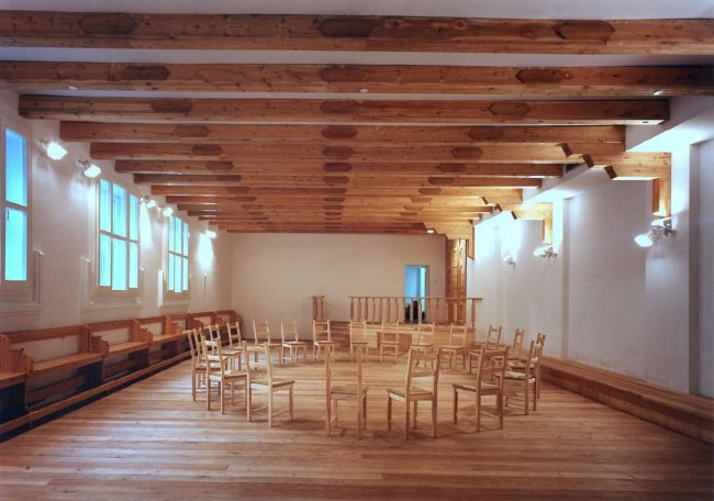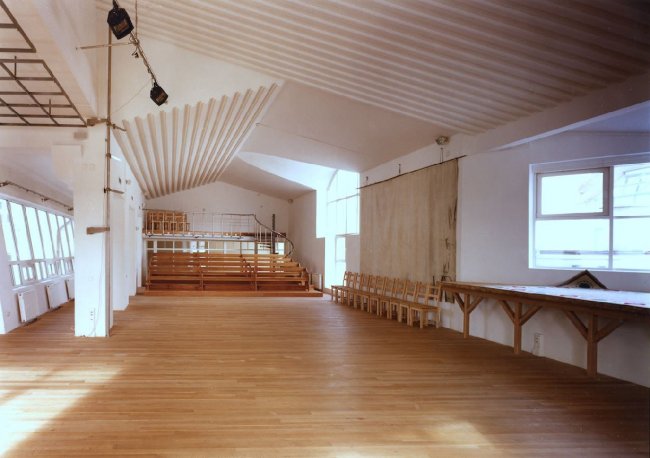 Естественное, проникающее через окна, освещение наполняет светом и воздухом ежедневную практику актеров, атмосферу лабораторных и постановочных спектаклей. На обеих площадках нетеатральное, естественное освещение сменяется лучами прожекторов, создавая живую игру света.
