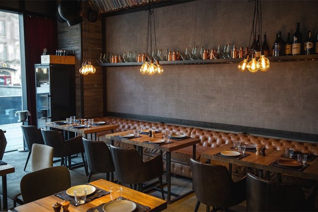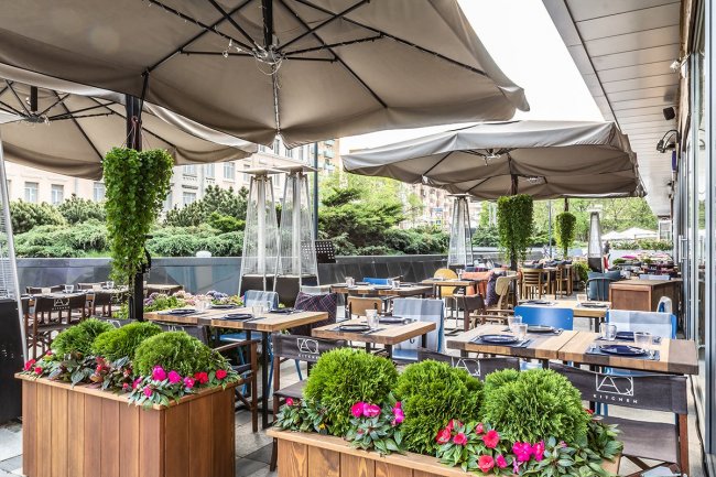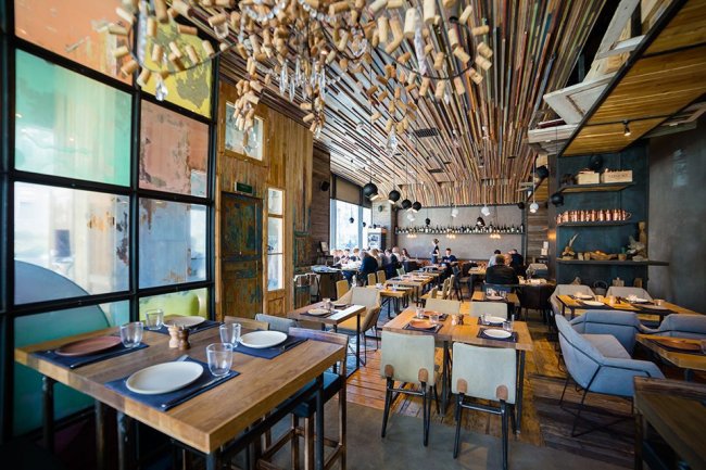 Ресторан «AQ Kitchen»Высокий потолок обработан на манер купола, на котором сочные краски пустились наперегонки. Интерьер получился очень тактильный, насыщенный деталями-специями, возбуждающими аппетит. Сильнейший в Москве тандем двух шефов — Адриана Кетгласа и Андрея Жданова ежегодно показывает новый уровень в сезонных меню AQ Kitchen. Идеальная гастросфера Адриана Кетгласа, где гости с удовольствием едят, со вкусом проводят время и возвращаются вновь и вновь — главная задача AQ Kitchen.