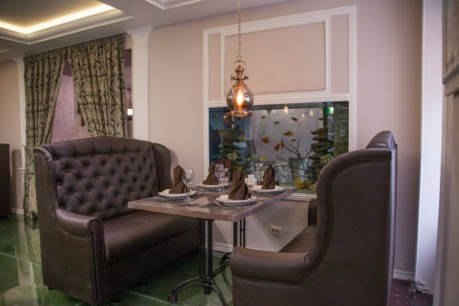 Сунжа на улице Пятницкая — ресторан восточной и кавказской кухни с авторским дизайном, где в одном из залов вместо привычного пола создан тропический аквариум, а летом гостей ждет видовая терраса.