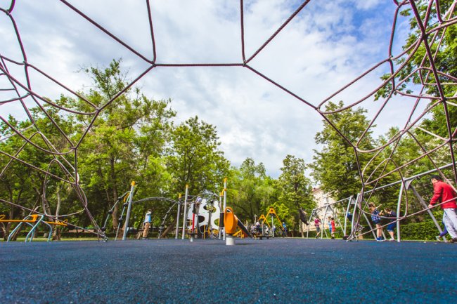В первую очередь, парк интересен детям. В нем установили несколько игровых площадок, рассчитанных на разный возраст, для детей младшего возраста— с паутиной из канатов, несколькими видами качелей, для ребят постарше-тренажерами, необычными горками и мини автомобилем. Зимой детская площадка в Гончаровском парке превращается в небольшого размера каток.