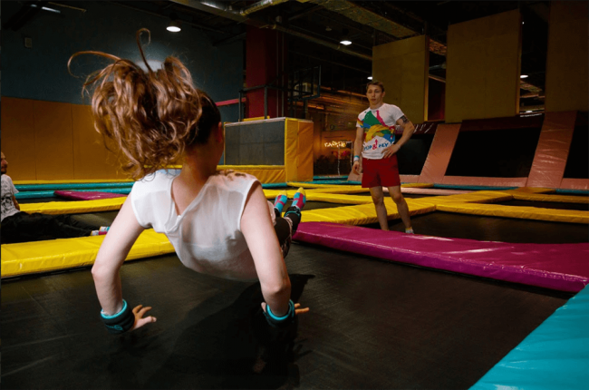 Попрыгать на батутах, испытать спортивные сетки, нырнуть в поролоновый бассейн и преодолеть трассу на скалодроме — все это включено в одно посещение.