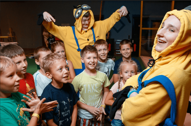 День рождения на батуте — это весело и ярко и запоминается надолго. Сюжет вы выбираете сами — вечеринка с миньоном, поиск сокровищ с пиратом, добрая сказка про фею, приключения с человеком-пауком и многое другое. Праздник длится 2 часа и состоит из двух частей: 1 час на батутной арене и 1 час праздничного застолья. Для бронирования праздника свяжитесь с батутным центром по телефону.