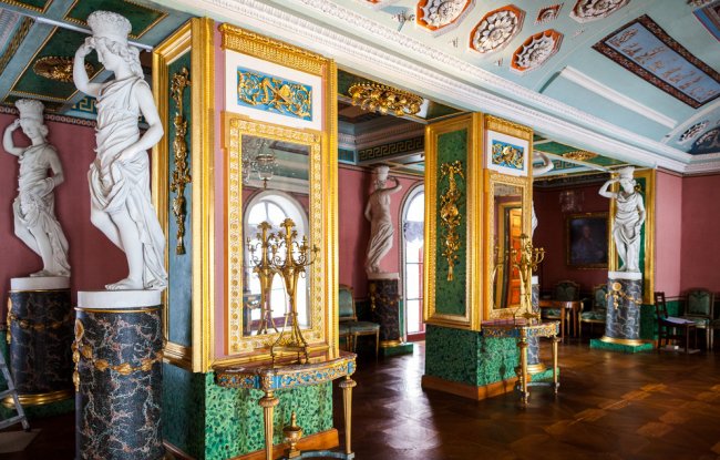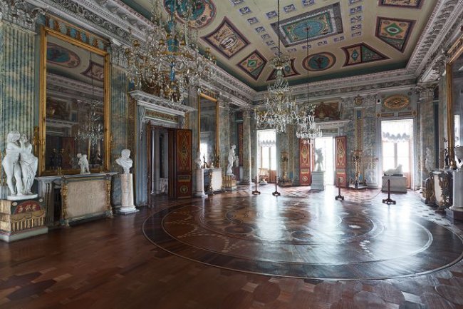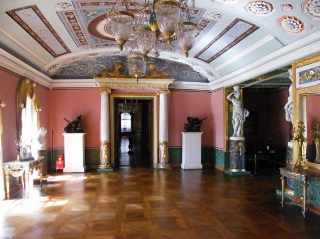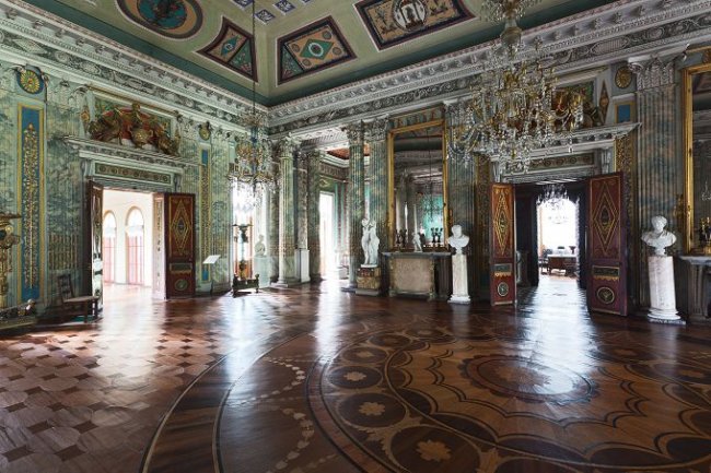 Московскии музеи-усадьба ОстанкиноДеревянные конструкции покрыты армированной сеткой, на которую особым образом нанесен слой мраморной крошки. Получившаяся поверхность разрисована узорами удивительной красоты, интерьеры обставлены уникальной мебелью и великолепными светильниками.