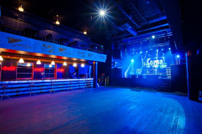 Клуб «Город»Для удобства посетителей Город поделен на три основных зоны: это просторный танцпол на 700 человек со сценой и главным баром (для корпоративных мероприятий это огромное пространство становится роскошным банкетным залом), малый зал — помещение поменьше на 200 человек с собственным баром, а также VIP балкон со столиками, откуда прекрасно просматривается сцена, и где можно насладиться концертом.