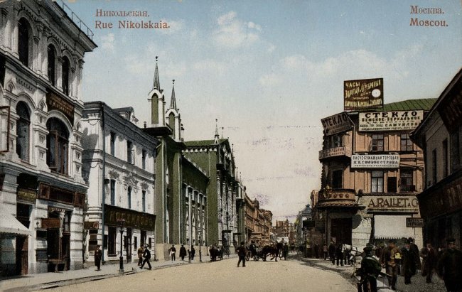Никольская улицаВо второй половине XIX века Никольская, как и другие улицы Китай-города, являлась деловым центром Москвы; на ней находились конторы крупнейших российских предпринимателей, а также престижная гостиница с рестораном «Славянский базар» (с 1872, дом № 17; перестроенный дом Шереметьевых 1781 года постройки).