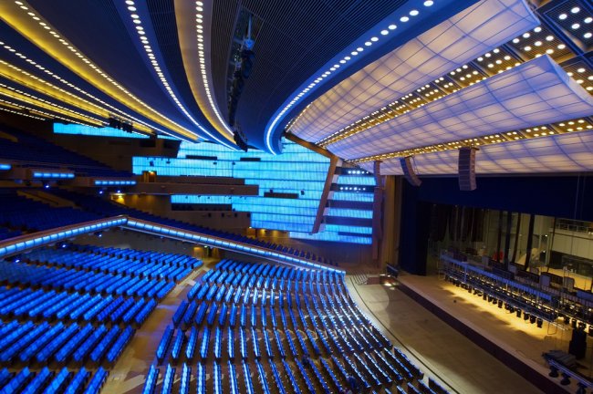 Государственный Кремлевский ДворецИзначально планировалось создать дворец на 4000 мест. Однако, масштабы первоначального проекта расширили и зал заседаний получил 6000 мест, а также был спроектирован банкетный зал с высокой вместимостью.