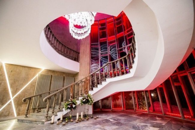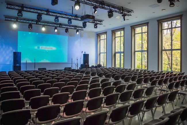 Здесь есть отдельное фойе для коктейля и открытая терраса. В Малом зале, площадью 51 м? можно организовать VIP переговорную или устроить параллельную сессию во время конференции. На первом этаже пространства — гардероб, стойка ресепшн. На втором этаже большое фойе, Малая переговорная комната и Большой зал. Комплекс предоставляет охраняемую парковку на 20 автомобилей.
