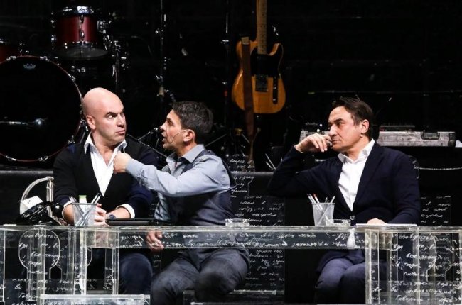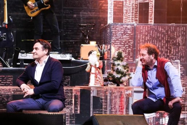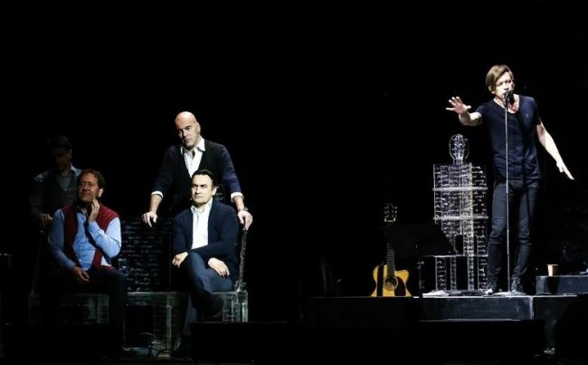 Потом — «О чем говорят мужчины. Продолжение», к которому группа не только создала саундтрек, но и снималась в фильме в полном составе, а еще выпустила клип на песню «Ля-ля тополя». Логично было сделать что-то совместное и на сцене. И тогда появились специальные выпуски спектакля «Письма и песни мужчин среднего возраста».