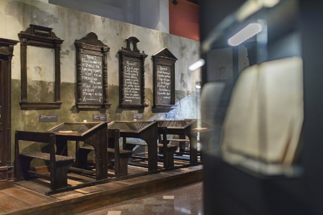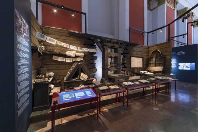 Выставочное пространство (более 1000 кв. м) делится на несколько зон. Первая часть экспозиции рассказывает посетителю о возникновении и развитии письменности от древности до наших дней, вторая — о том, как тексты связаны с духовной, культурной и политической жизнью общества.