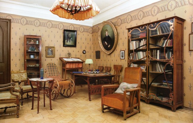Вся мебель является оригиналами знаменитых мебельщиков начала двадцатого века, в частности мастера из Бельгии Серрюлье-Бови. Бесценным экспонатом являются скрябинские рояли. Особого внимания заслуживает знаменитый рояль фирмы «Бехштейн», за которым композитор импровизировал и исполнял свои последние сочинения. Здесь вы найдете связанные с композитором фотографии, автографы, письма, ноты.