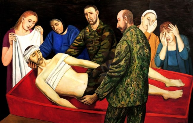 Среди произведений на выставке (некоторые работы показаны впервые), — чрезвычайно острые, наполненные драматизмом и тревогой образы войны, многофигурные сцены будничных застолий, фантасмагорические «красные» картины, по-своему обыгрывающие архетипический сюжет власти женщин, неканонические библейские композиции, а также обширный цикл «Фамильный альбом». Объединивший живопись, графику и объекты, посвященный восстановлению утраченной семейной памяти, он особо занимает художницу в последнее время.