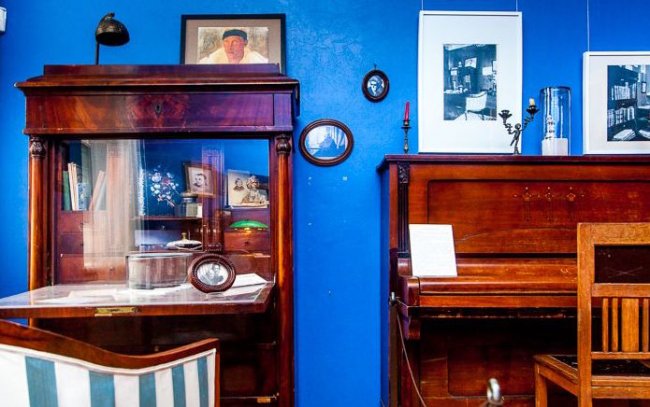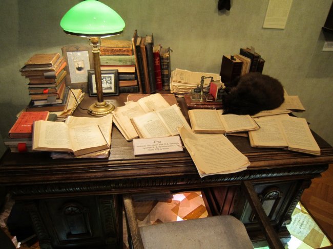 М.А. Булгакова всегда хотел работать в комнате с синими стенами и воплощением его желания стал «Синий кабинет». Здесь были написаны лучшие книги. Обратите внимание на расположенный в углу большой секретер из красного дерева и металла. Над ним он работал, создавая «Мастер и Маргариту«.?Кухня в коммуналке, наполнена предметами обихода той эпохи: кастрюлями, примусами, керосином.?Интересной экспозицией музея является выставка редакции газеты «Гудок». В ней в двадцатые годы работали такие писатели, как М. Булгаков, В. Маяковский, И. Ильф и Е. Петров, В. Катаев. Выставка включает архив, редакционные документы, выпущенные газеты и журналы.