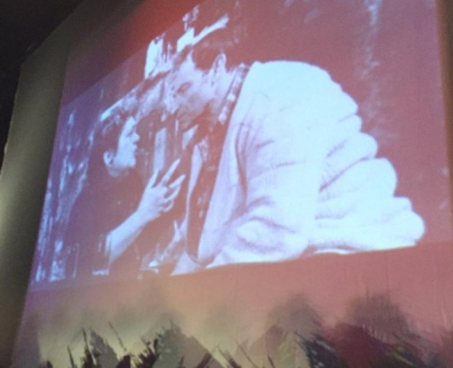 09:23 Фото на экране сменяют видеокадры с репетиций, где Галина Волчек - живая, яростная, красивая.