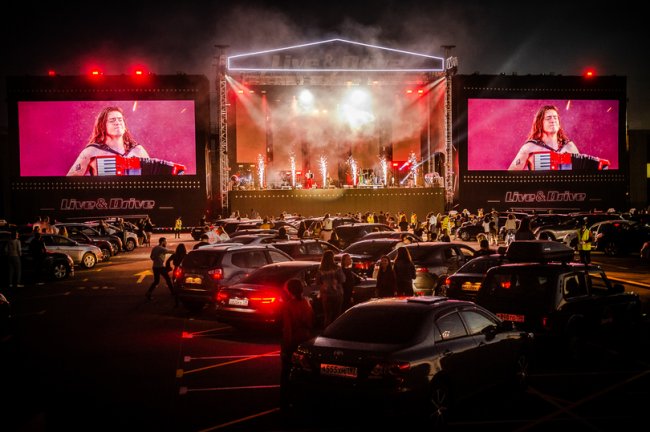 Название шоу говорящее: Live & Drive можно перевести, причем, двумя способами, и оба будут в тему – «живи и рули» или «жизнь с драйвом». Кавалькада машин направилась к большой открытой площадке, где была выстроена сцена. Хотя это был первый опыт организации подобного ивента, блин получился не комом – никаких пробок на въезде, все четко отлажено, автомобили выстроились в несколько рядов по диагонали на более чем безопасном расстоянии от сцены. Эдакий опен-эйр, только немного непривычный и странный. Фишка заключалась не только в том, что посетить концерт можно было только на автомобиле, но и в специальной передаче звука: он выходил через радиоприемники в авто на настроенной волне. Не все сразу поняли систему и, радостно выскочив из машин, сначала недоумевали, почему музыканты, мол, играют так тихо. Выходить из транспорта - пожалуйста, но, что называется, «больше трех не собираться», точнее – больше четырех: это максимальное количество, в котором можно было приехать на одном транспортном средстве.