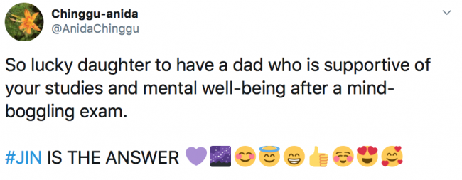Qoo post about how during China's College Entrance Exam a father was seen waiting for his daughter w/ a Jin Slogan comments are so funny:#방탄소년단진 #JIN #SEOKJIN #진 #김석진 #방탄진 #BTSJIN @BTS_twt pic.twitter.com/pGjnhkfS6u