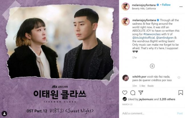 Сольная песня Ви (V) из BTS «Sweet Night» была написано специально для к-драмы «Итхэвон класс» (Itaewon Class). И хотя мембер BTS принимал непосредственно участие в создании мелодии и слов, другие авторы, по мнению АРМИ, получили гораздо больше похвалы, чем Тэхён.