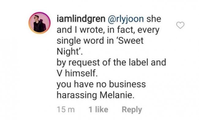 14 июня Universal Music Publishing Group (UMPG) поделились в своем Instagram фотографией Фонтаны, подчеркнув ее вклад в создание песни «Sweet Night». Пост тут же получил множество негативных комментариев от фанатов BTS. По словам АРМИ, Фонтана, которая написала не одну песню вместе с бойз-бэндом, в этот раз получила слишком много похвалы.