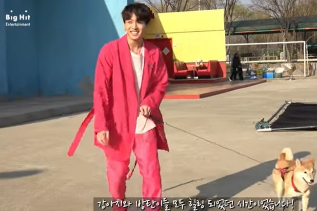 В последнем эпизоде Bangtan Bomb айдолы были пойманы на съемочной площадке «Boy With Luv» в тематических розовых костюмах в тот момент, когда их пришел поприветствовать маленький пушистый посетитель Кёнсун (Gyeongsun). Джин начал играть с улыбчивым псом и попросил Кёнсуна «дать пять». Пес решил не мелочиться и подпрыгнул «на высокую десятку», испугав Джина.