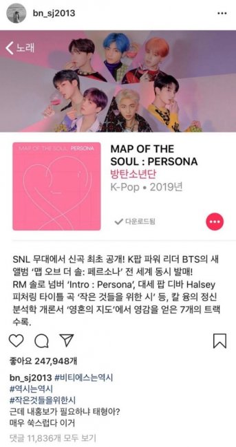 Затем Пак Хён Сик (Park Hyung Sik) также поделился скрином нового альбома BTS с аналогичной надписью.