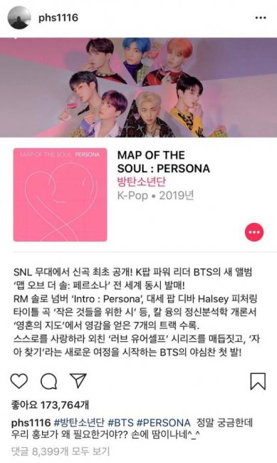 Сначала Пак Со Чжун (Park Seo Joon) выложил фотографию с «Map of the Soul: Persona» и оставил стеснительную подпись.