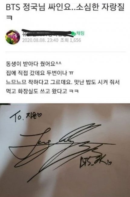 На одном из форумов АРМИ опубликовала автограф Чонгука, который специально для нее взял техник. Выяснилось, что рабочий устанавливал звуконепроницаемую вокальную будку в квартире айдола.