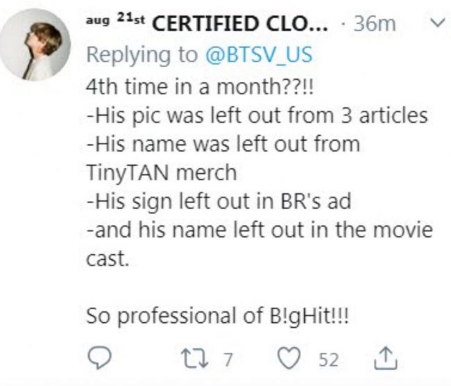 «Это когда-нибудь прекратиться? Сколько раз уже можно забывать Тэхёна в своих описаниях, титрах, пост-релизах и прочих официальных докумантах, неужели он своей работой заслуживает такого позорного отношения к себе»