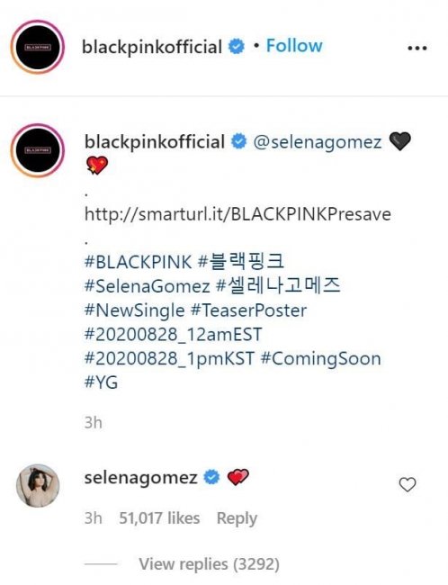 Самая ожидаемая коллаборация Blackpink и Селены Гомес (Selena Gomez) официально подтверждена! Когда встречаются мега-артисты, которые правят миром музыки, у фанатов не остается сомнений, что любая их песня точно станет хитом.
