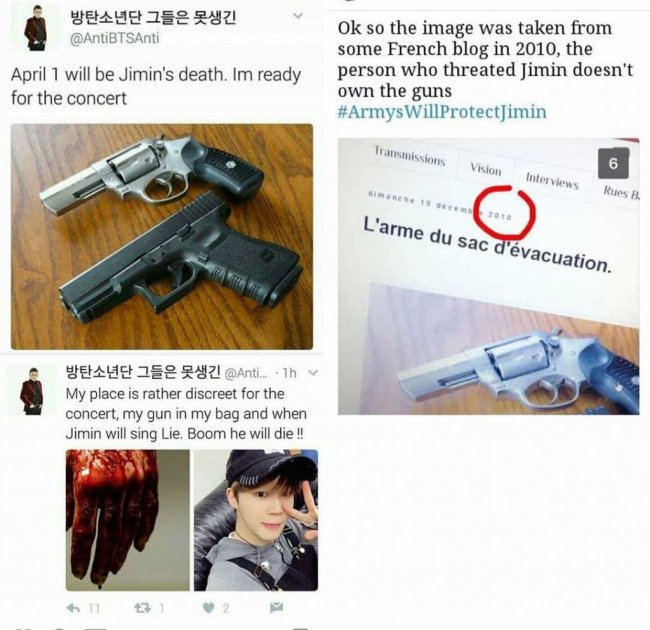 «Я выстрелю в него 1 апреля во время концерта. Готовься Чимин, это будут последние минуты твоей жизни»,