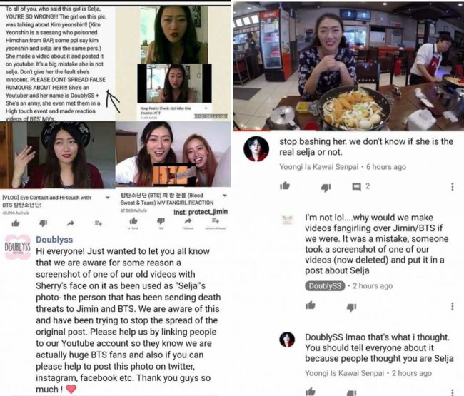 «Я блогер, у меня свой YouTube-канал DoublySS, меня зовут Шерри и я никак не связана со всей этой историей. Наоборот! Я очень люблю BTS!»