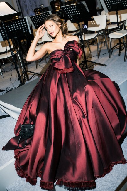 Также была замечена Алеся Кафельникова в бордовом наряде Dior из шелкового атласа.