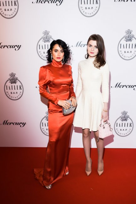 На бал пришла и Тина Канделаки с дочерью Меланией. Телеведущая выбрала для вечера красное атласное платье Alessandra Rich и украшения Liza Borzaya, а ее наследница скромное коктейльное платье молочного цвета.