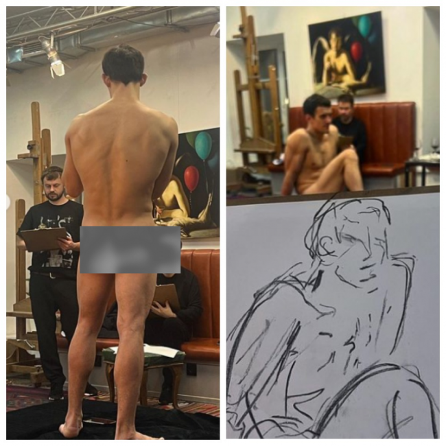 Светлана продемонстрировала своим подписчикам, как у нее получается рисовать живого человека: молодой натурщик был полностью обнажен и позировал ей и другим участникам курса в разных позах.