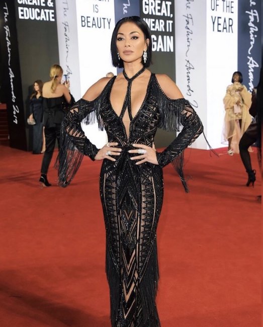 Николь Шерзингер предстала в черном полупрозрачном платье с глубоким декольте, украшенном узорами и бахромой. Кстати, недавно Николь воссоединилась со своей группой The Pussycat Dolls — впервые за 10 лет!