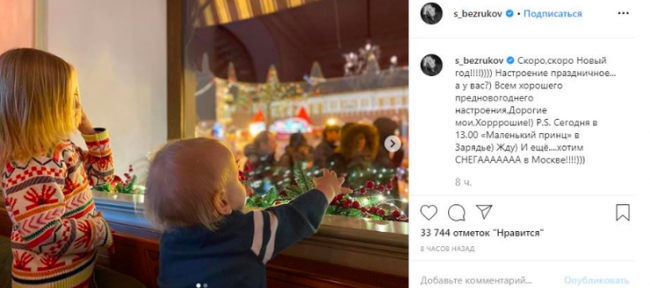 Но в канун Нового года Безруков решил сделать исключение и выложил трогательный снимок своих наследников. «Скоро, скоро Новый год! — подписал свой пост Сергей. — Настроение праздничное. И еще… Хотим снега-а-а-а!»