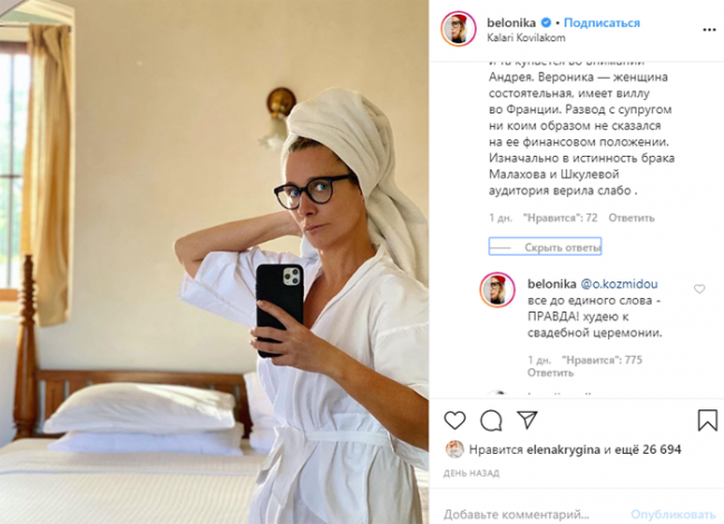 «Что касается самого брака Малахова и Шкулевой, то все это, по большей степени, фикция. В его семье нет любви, страсти и согласия, люди сошлись для того, чтобы не находиться в одиночестве, поддерживая друг друга в каких-то вещах, но они оба понимали, что в скором времени их дороги разойдутся, и сейчас именно этот период".
