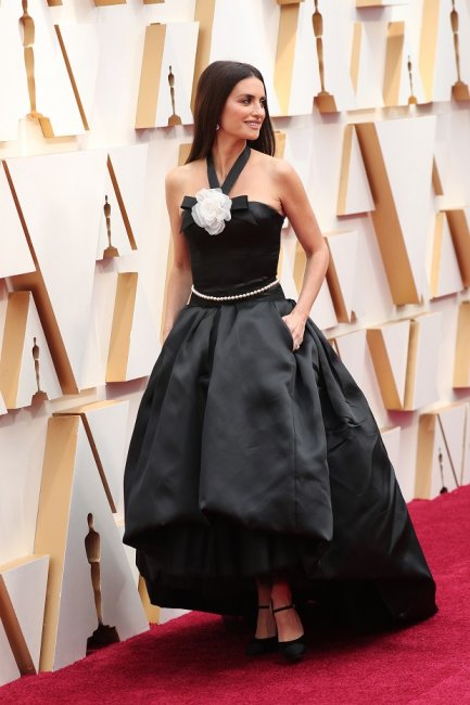 Пенелопа Крус предпочла Gucci, надев черное платье с пышной юбкой и декором в виде белого цветка в зоне декольте. Элегантная цепочка из жемчуга на талии дополнила образ актрисы.
