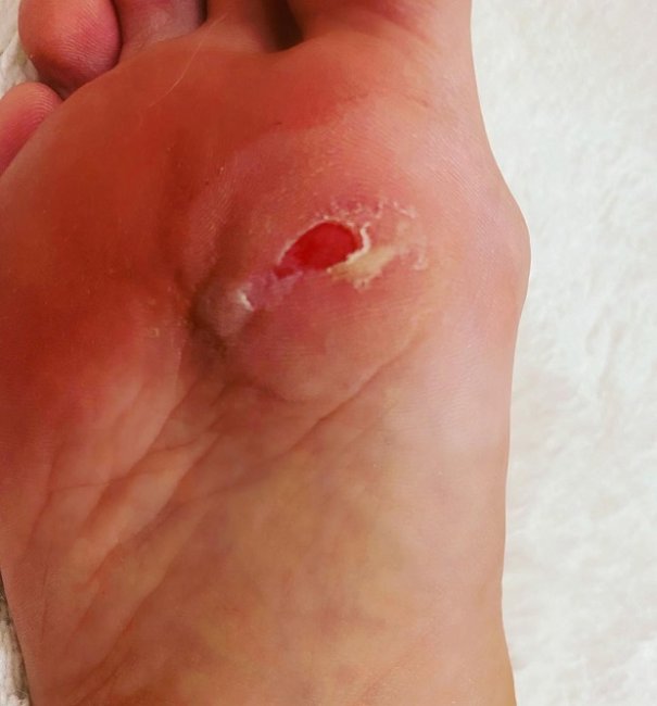 Лобода сопроводила текст снимком своей ноги. На стопе певицы появилась кровавая мозоль. Она добавила, что по приезду домой легла и пару часов не могла подняться из-за боли в руках и ногах.